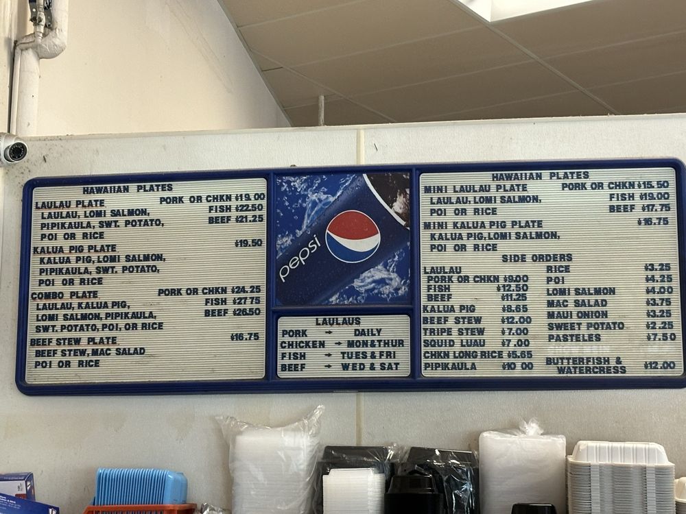 Pork Laulau, Lomi Salmon, Pipikaula, Sweet Potato, Poi OR Rice