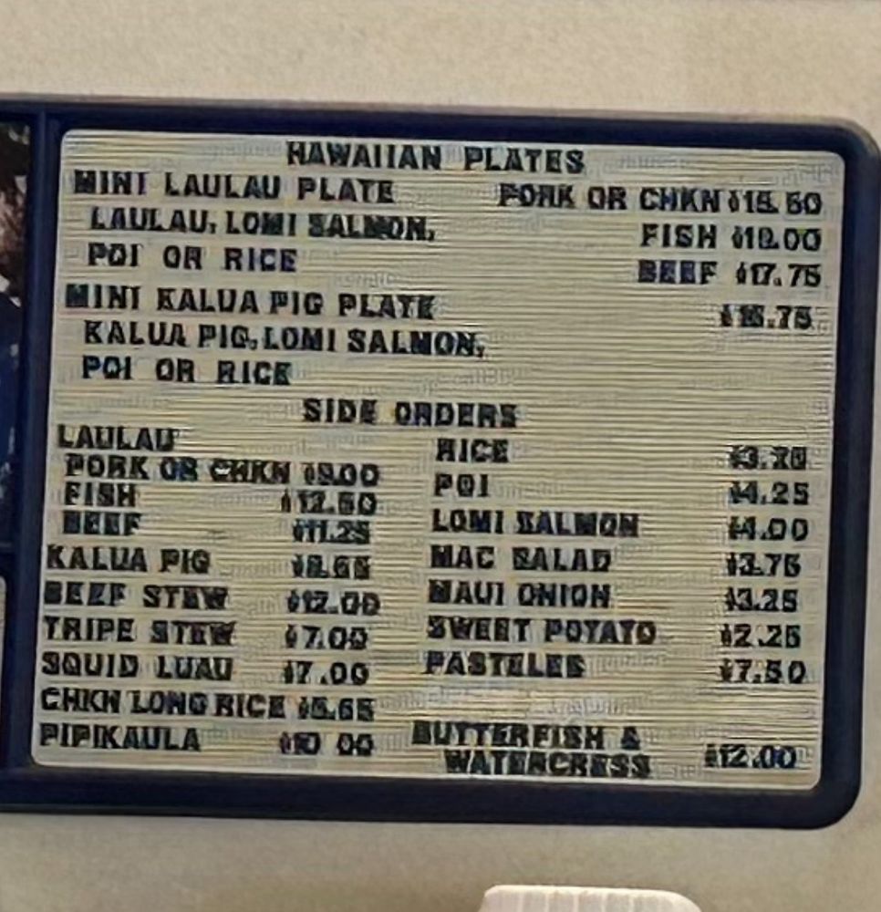 Pork Laulau, Lomi Salmon, Poi OR Rice